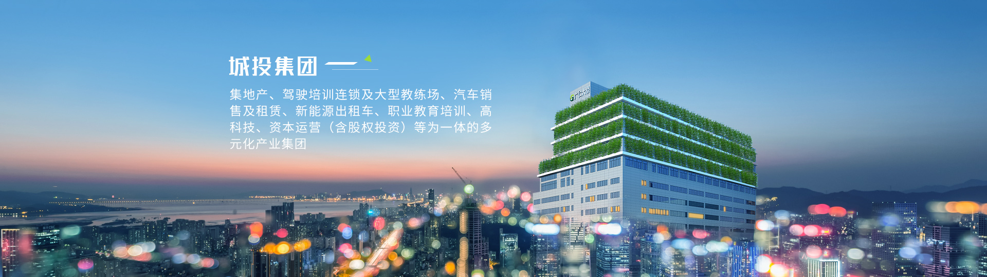 城投集團堅持“愛黨愛國、孝敬父母”的核心企業(yè)文化,主要業(yè)務(wù)為高科技、互聯(lián)網(wǎng)、基金投資、地產(chǎn)開發(fā)、職業(yè)教育培訓、駕駛培訓、汽車銷售及租賃、出租車運營等。